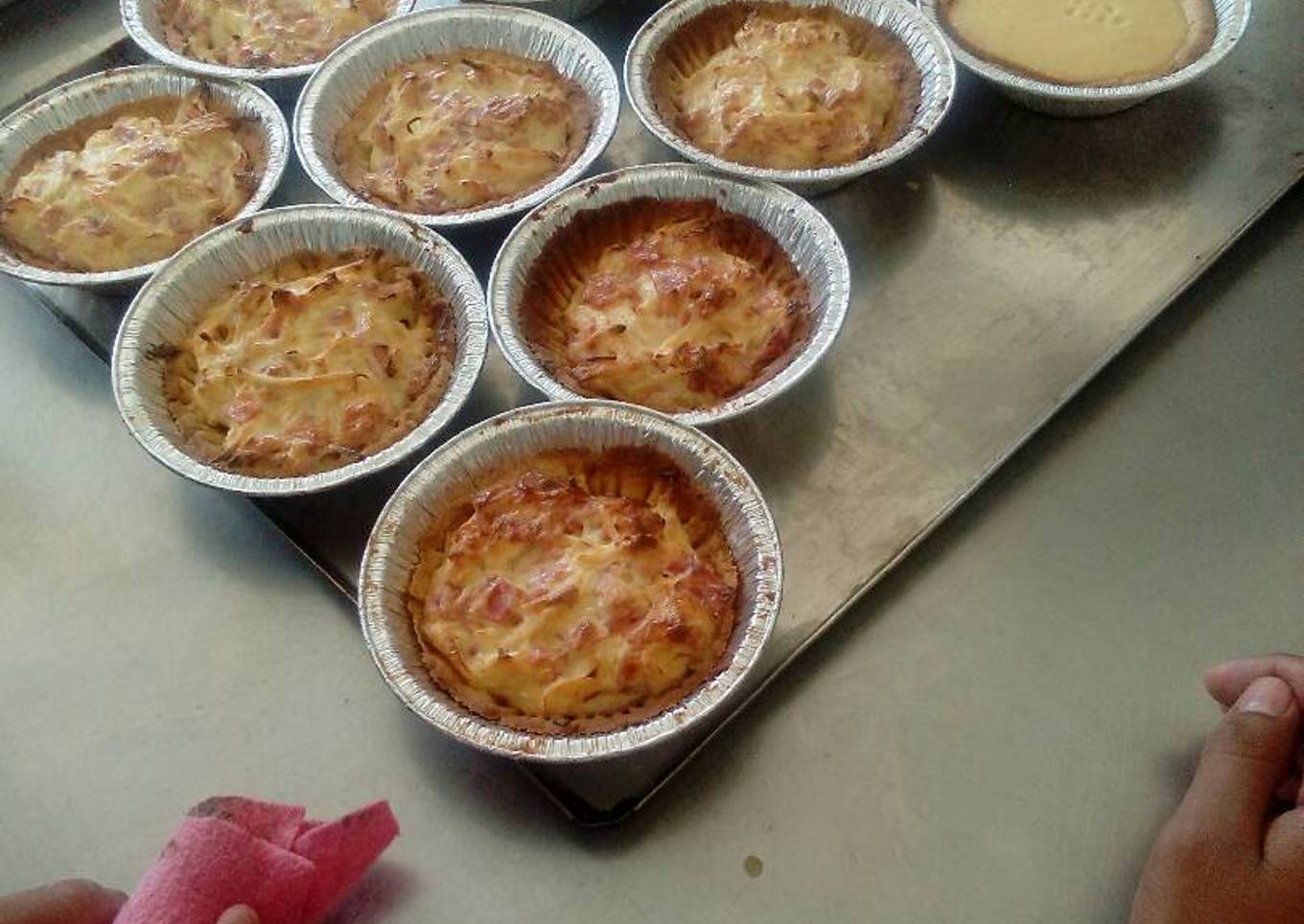 - Se hornea la masa de las tartas 5 minutos y después de ese tiempo se rellena con la mezcla dejando unos 30 minutos más. Se deja enfriar y después se degusta.