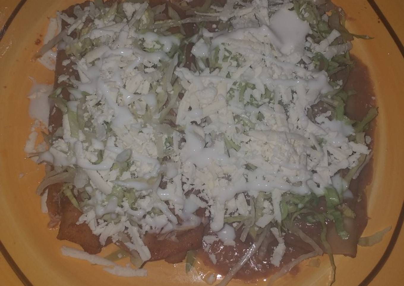 - La pones en un plato y harás lo mismo que las enfrijoladas las rellenas de queso o pollo desmenuzado haces rollitos y les agregas lechuga, queso, crema, salsa de tu preferencia y la cebolla curtida y listo.